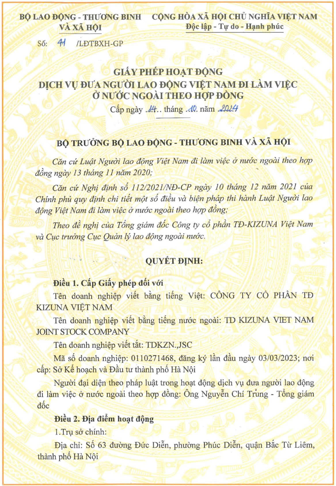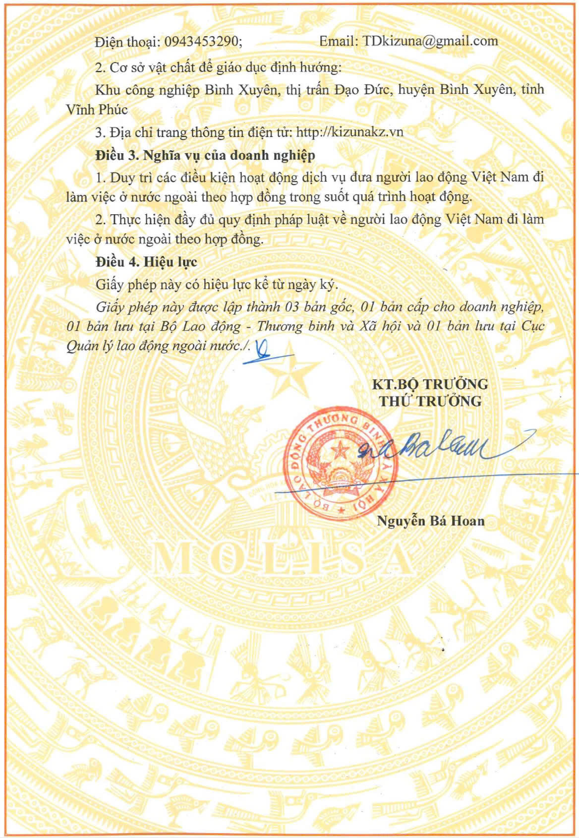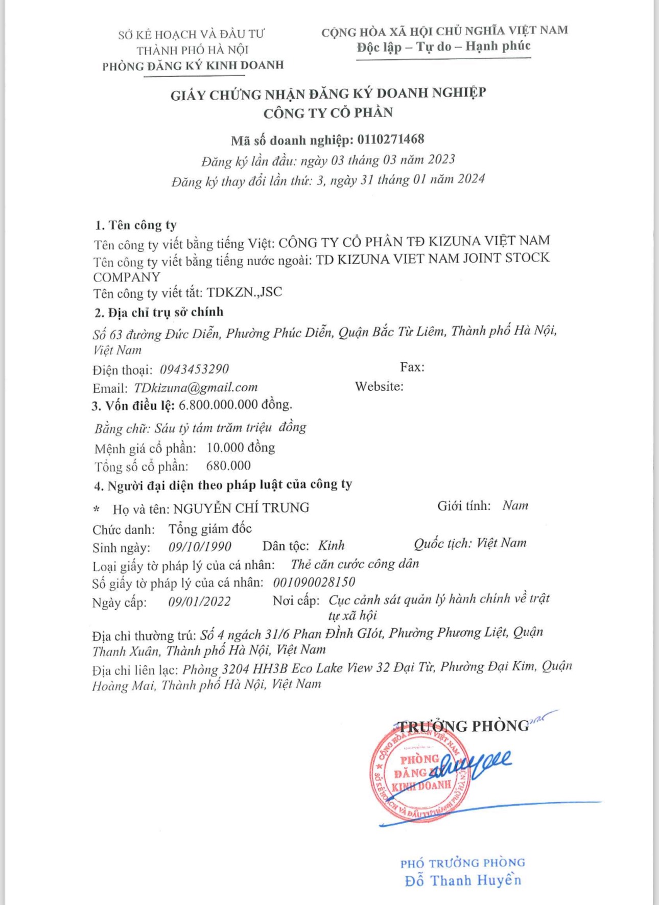 DANH SÁCH NHÂN SỰ CÔNG TY CỔ PHẦN TĐ KIZUNA VIỆT NAM